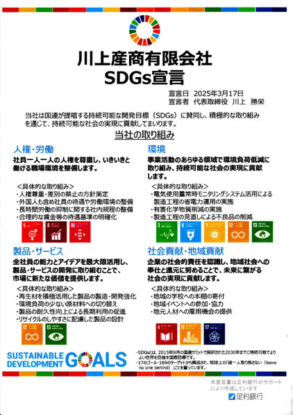 ●2025年3月 足利銀行様のご支援によりSDGs宣言いたしました